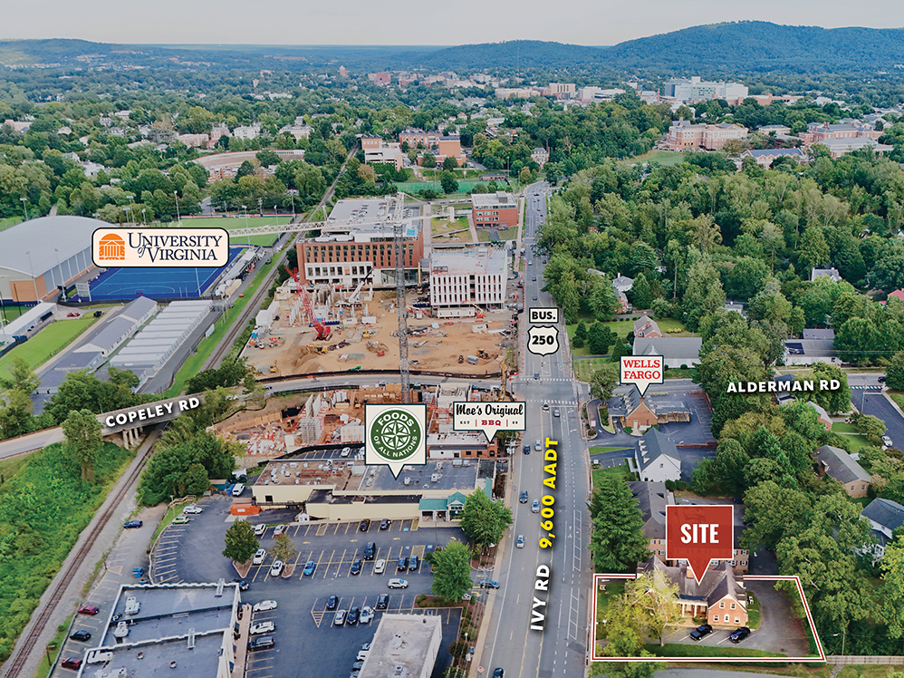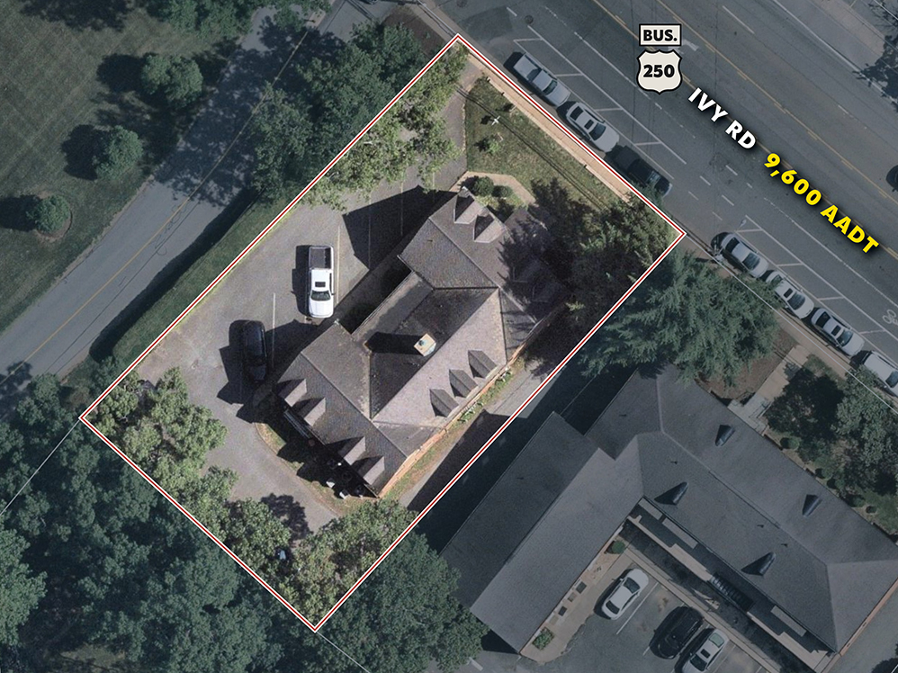 2,650 SF office space available 12/1/25, located on highly visible Ivy Road near UVA and the Medical Center. The property offers excellent access via Route 250 and US 29, with ample on-site parking and strong signage opportunities. Walkable to restaurants, cafes, and shops, the space provides a convenient, customizable layout ideal for professional office use.