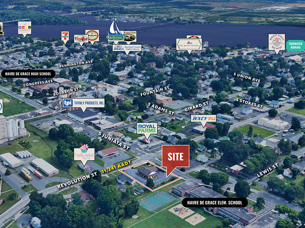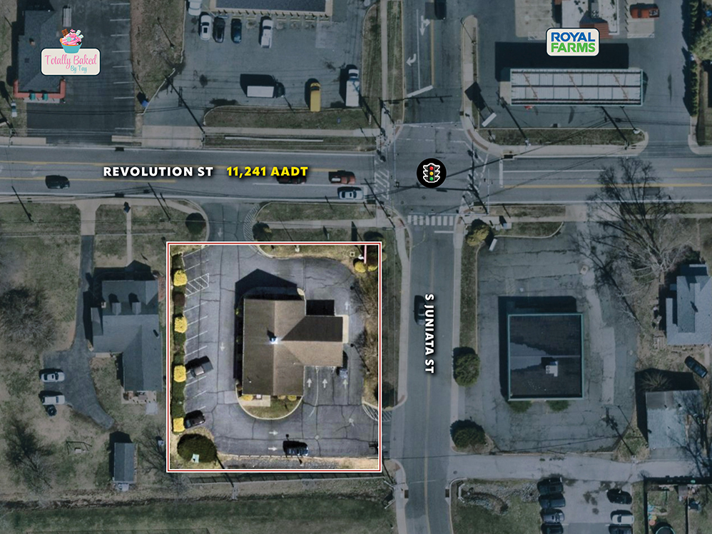 800 Revolution Street is available for sale or lease and offers a prime retail or bank building featuring a 3-lane drive-thru and existing pylon signage. Situated at a signalized intersection with curb cuts on both Revolution and S. Juniata Streets, the property enjoys excellent visibility and access. It is conveniently located catty-corner from a busy Royal Farms gas and convenience store and lies within a designated Opportunity Zone, providing potential tax benefits for investors or occupants.