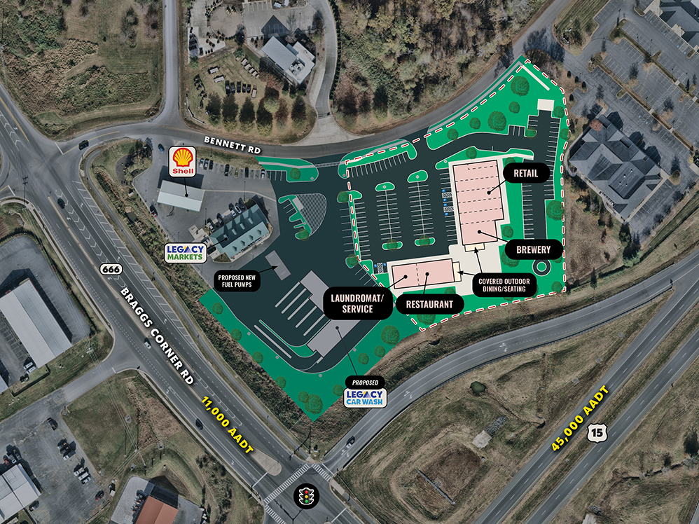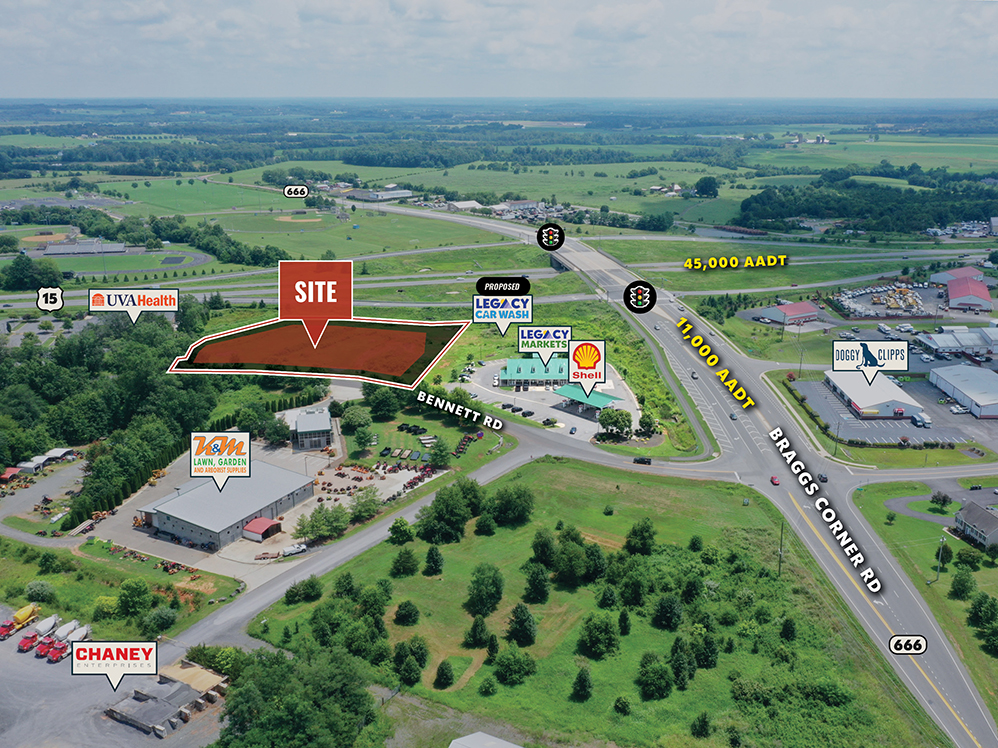 This new mixed-use project on Bennett Road in Culpeper, VA will offer approximately 16,008 SF of retail space and 6,108 SF of second-floor office space, with construction anticipated to begin in Q1 2026. The site offers high visibility with strong traffic counts and convenient access to Routes 15, 29, and 666. Ideal for service-oriented retailers, restaurants, or breweries, the development is positioned to join nearby Shell, Legacy Markets, and a proposed Legacy Car Wash. Located within an established commercial hub featuring healthcare, manufacturing, retail, technology businesses, and the Eastern View High School and Sports Complex, the property offers an attractive opportunity for a wide range of users.