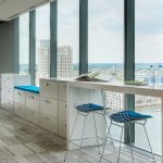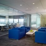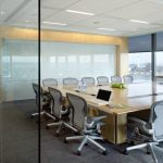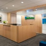Interior fit-out (from shell space) on two floors of a high-rise office building located in Harbor East. Glass office fronts and conference rooms were utilized to allow natural light into the entire space as well as providing spectacular views of the harbor. Quartered figured English sycamore millwork was used throughout, along with carpet tiles to gain access to the raised floor for cabling and electrical connections.